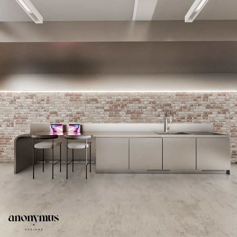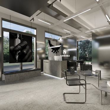 The tattoo shop features a raw stainless steel design that is minimal and clean, embodying the philosophy of "less is more"